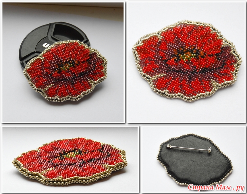 Маки из бисера — схемы и техники выполнения, плоские и объемные модели (72 фото)