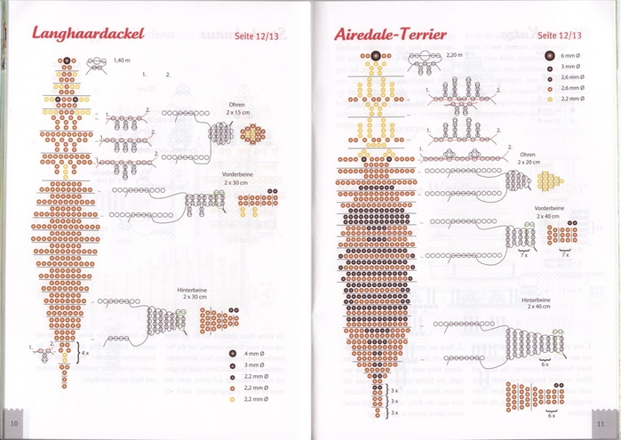 Хвост выполняется постепенным убавлением количества бисеринок в ряду. Количество бисерин в каждом ряду повторяется по два раза, в этом случае хвост крокодила будет удлинен. Если уменьшение числа бисерин выполнять в каждом ряду, то хвост получится слишком коротким и будет выглядеть «обрубленным». В нашем случае это: