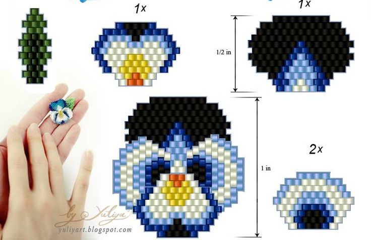 Анютины глазки из бисера по схеме и фото мастер-классу с видео сопровождением