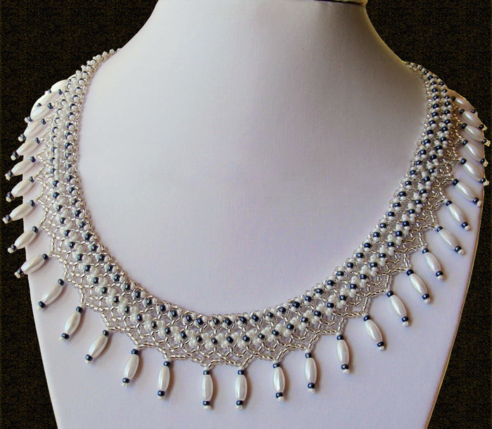А так как наши женщины талантливы и обладают хорошо развитой фантазией, количество схем плетения из бисера колье и ожерелий с каждым днем увеличивается. Найти их можно в журналах, специальных книгах и, конечно, в интернете.