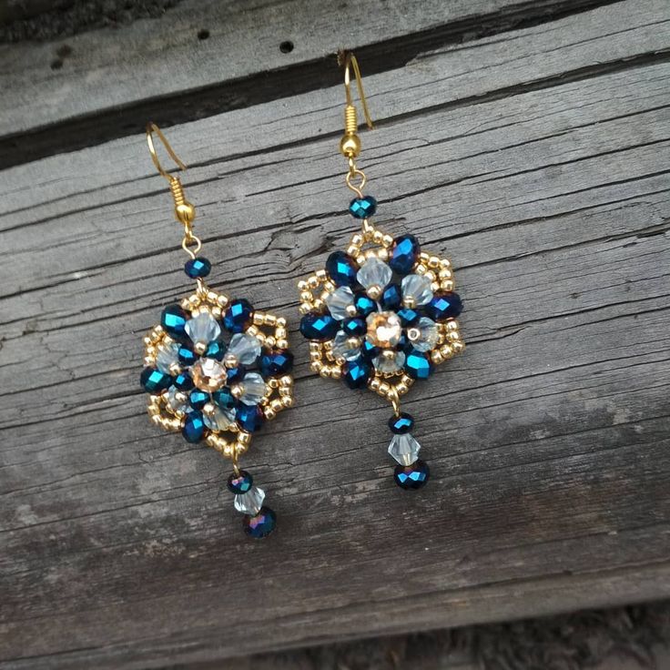 Техника: кубический переплетенный переплет и либо австрийские стеклянные бриолеты, либо чешские стеклянные капли, а также японский бисер размера 15 и 11; чешский стеклянный жемчуг; Бусины-разделители TierraCast и швензы.