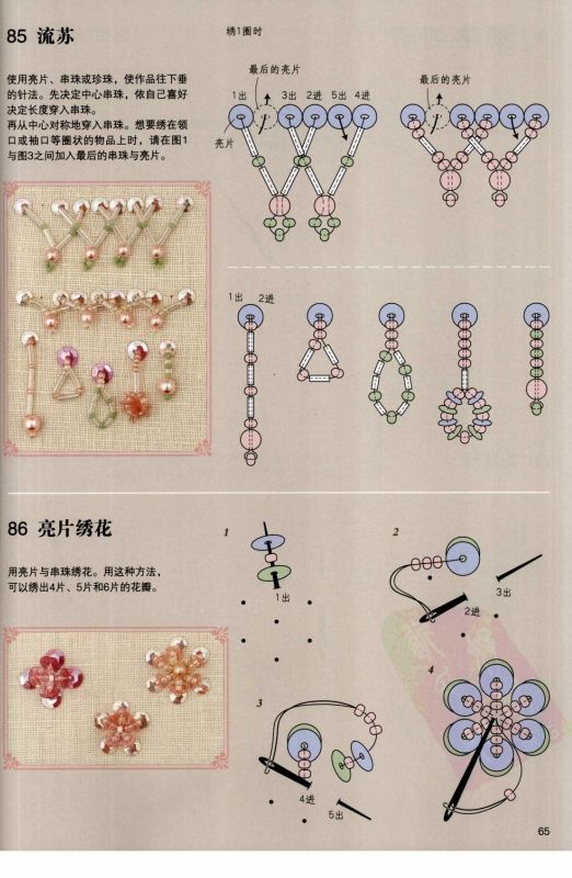 Многие дизайнеры также предпочитают комбинировать пайетки и бусины в один сверкающий разноцветный рисунок, особенно для более изысканных изделий, предназначенных для особых случаев.