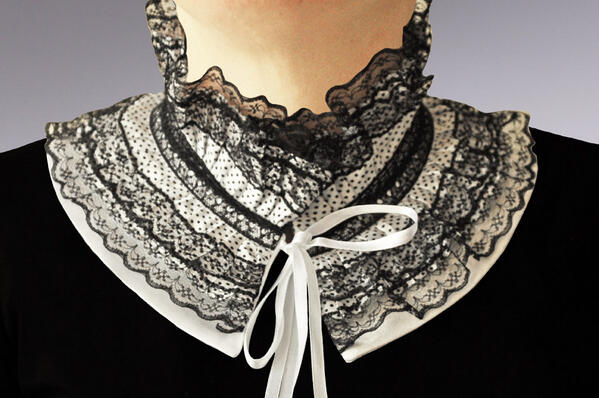 При выборе воротничка желательно подбирать контрастные цвета, которые смогут сочетаться с той вещью, которую Вы хотите украсить. Этот элемент декора можно легко брать с собой на работу или учебу, чтобы в течении дня преображаться и дополнять образ некой изюминкой.
