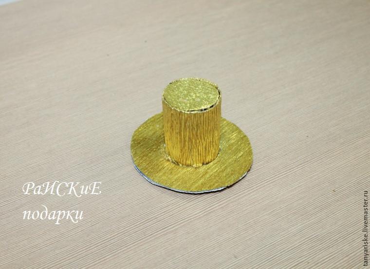 11. Заготовки обклеиваем бумагой. Поля у шляпки обклеиваем с двух сторон без подгибов с помощью клея "Титан".