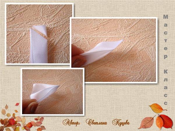 Складываем ленту пополам (по длине) изнанкой внутрь.