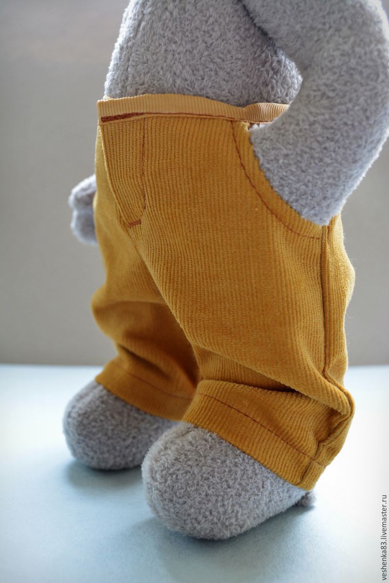 Шьём брюки с карманами для игрушки. Брюки своими руками для куклыШьём брюки с карманами для игрушки – Ярмарка МастеровИгрушки-мальчики у меня наиболее популярны, чем игрушки-девочки. Мальчикам тоже нужен разнообразный гардероб и помимо простых штанишек на резинке, можно сшить брюки с карманами. В таких брюках мальчики зайчики и мышки солиднее выглядят. Сегодня я покажу, как я шью брюки с карманами своим игрушкам, может, какие-то приёмы окажутся полезными и для вас. Подбираем материалы для наших будущих брюк, у меня это х/б вельвет и кусочек хлопка на обтачку кармана. Еще понадобится кусочек ленты велкро и немного репсовой тесьмы (или любой другой).