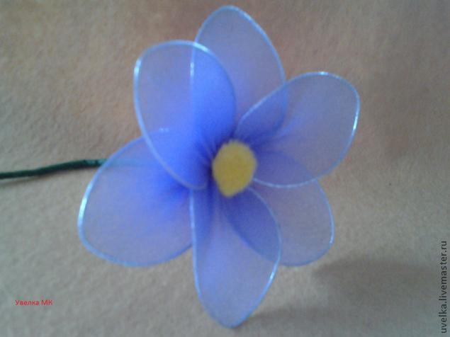 Проволока первого типа, в свою очередь, бывает с пластиковым или бумажным покрытием. Обычно ее стандартная длина составляет от 30 до 80 см. Что касается гибкой, то ее продают метражом, и есть варианты разной толщины, с номерами от 18-го до 30-го. Также нужно обзавестись шаблонами диаметром от 1,7 до 7,5 см. Если их не продают в вашем городе, то можете склеить такие цилиндры самостоятельно из листа достаточно толстого, но легко сгибающегося картона. Кроме того, чтобы изготовить цветы из капрона своими руками, понадобится зеленая тейп-лента, посредством которой будут скрепляться между собой детали и оформляться стебли. Дополнительные аксессуары и инструментыДля того чтобы цветы получились максимально похожими на настоящие, также стоит приобрести готовые тычинки и пестики из пластмассы. Будет идеально, если вам удастся найти также готовые чашелистики и листья. Что касается того, какие инструменты понадобятся, чтобы изготовить цветы из капрона, то их набор достаточно прост. Это круглогубцы, плоскогубцы, ножницы. Нужны будут также вата, нитки под цвет капрона и клеевой пистолет. Цветы из капрона: мастер-класс по изготовлению фиалкиДля создания такой поделки нужно: