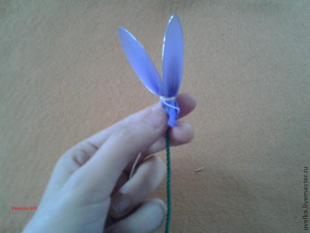 Дойдя до лепестков нужно крепко и хорошо обмотать под ними раза два чтобы скрыть все ниточки и выглядело очень ествественно.
