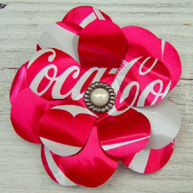 И напоследок немного экзотики. Броши из пластиковых бутылок, металлических банок из-под кока-колы и даже из язычков от этих банок! Все в дело! Это поистине волшебное преображение!