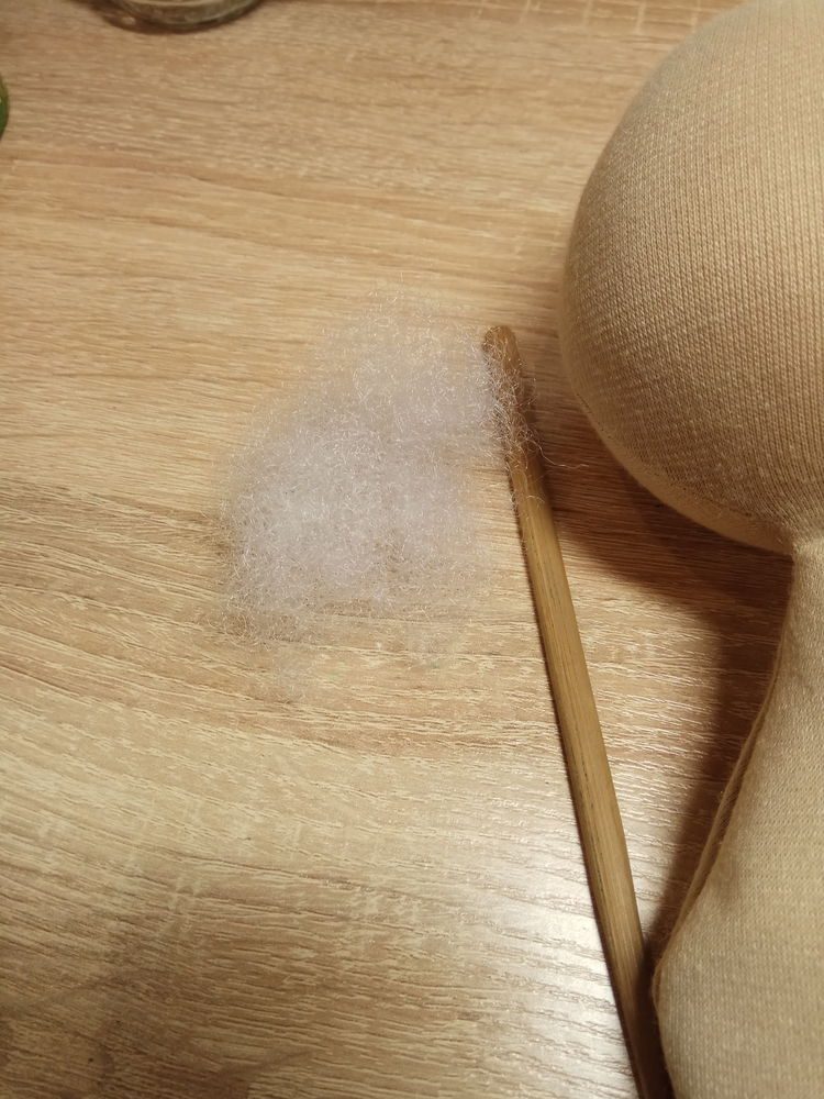 Вывернула детали куклы на лицо, наполнила синтепоном. Очень удобно это делать деревянной палочкой, предназначенной для маникюра.
