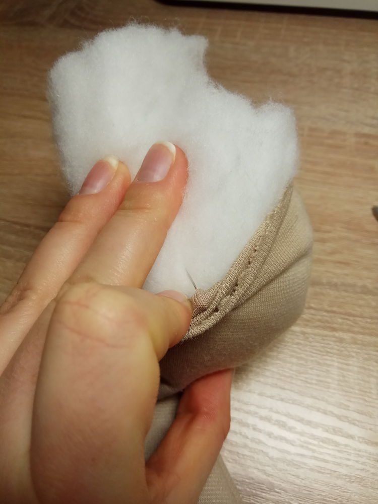 Набиваем наполнителем. Я выбрала лебяжий пух, он очень мягкий!