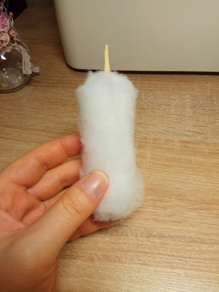 Делаю утяжку пупочка и попы. Теперь можно приступить к формированию головы. Нам понадобится шерсть для валяния и иголка для фильцевания.