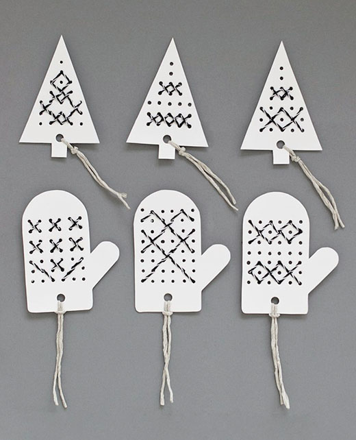 Можно использовать вышивку по бумаге. В создании совсем простой вышивки вам с удовольствием помогут дети: