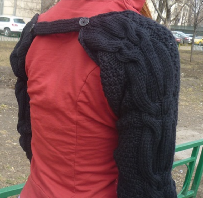 Либо мастера предлагают другой очень необычный вариант – связать комплект, состоящий из воротника, продолжающийся в рукава.