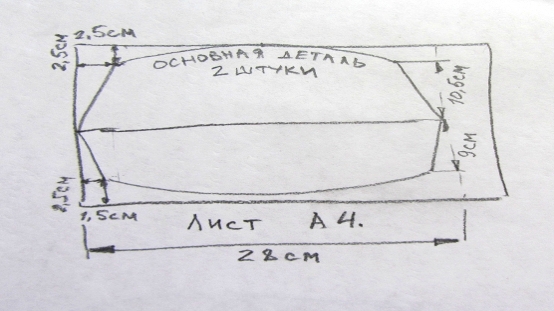 В самой простой идее, как сшить военную пилотку своими руками, выкройки состоят с двух деталей: основная часть и вставка. При этом вовсе не обязательно тщательно разрабатывать выкройку под конкретный размер головы, если длина изделия 28 см, как в нашем случае, то ее может носить и взрослый, и ребенок, а отличие будет состоять лишь в том, как головной убор будет сидеть на голове.