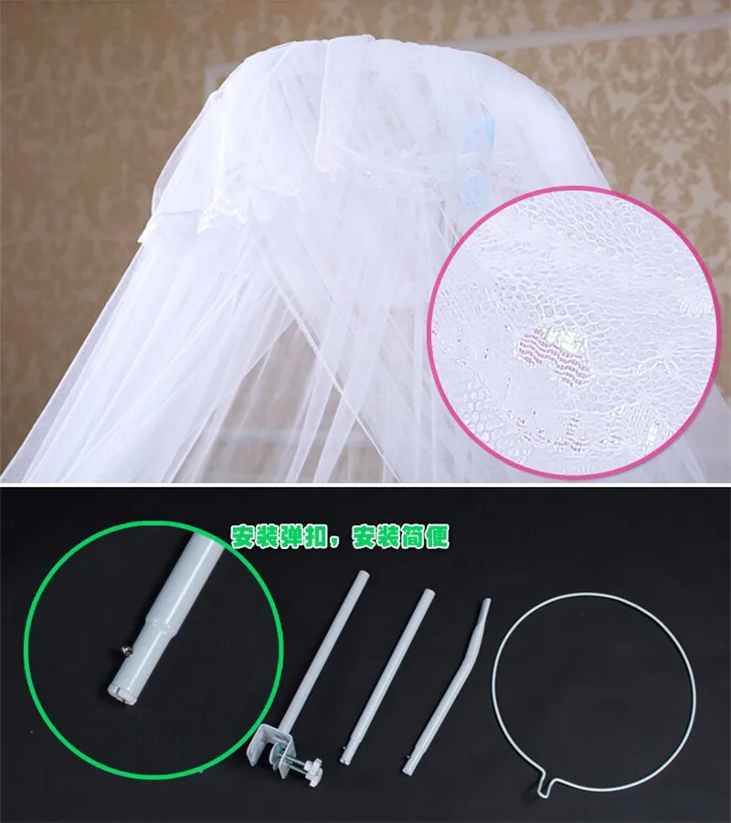 Закрепить балдахин на каркас можно различными способами. Самый простой вариант — это обработать верхний край также, как вы обрабатываете юбку, когда хотите сделать ее на резинке. Но если вы берете легкую воздушную ткань, то лучше отделать край петлями и пуговицами, которые затем можно надеть на держатель.