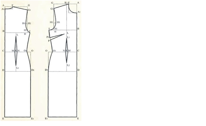 Примечание. Если полуокружность бедер по мерке окажется больше, чем по чертежу выкройки, то 2/3 разницы между полуокружностью бедер по мерке (вместе с прибавкой) и чертежу выкройки прибавляют к переду и 1/3 — к спине.