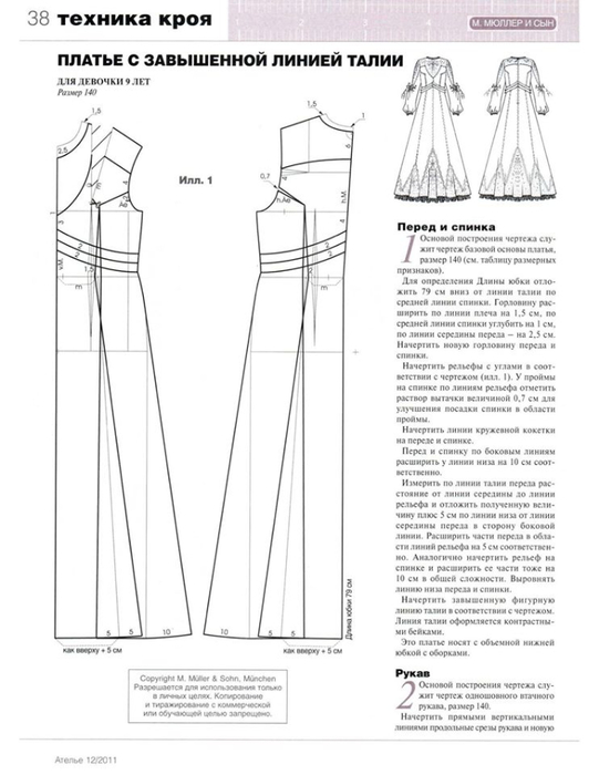 Застежка – потайная молния в боковом шве. Верхняя часть корсета (двойная со сгибом) пристрачивается к нижней. Затем соединяются боковые швы. Важно, не забыть про молнию и пояс. Наконец, лиф притачивается к юбке. Обрабатывается низ. Роскошный наряд готов.