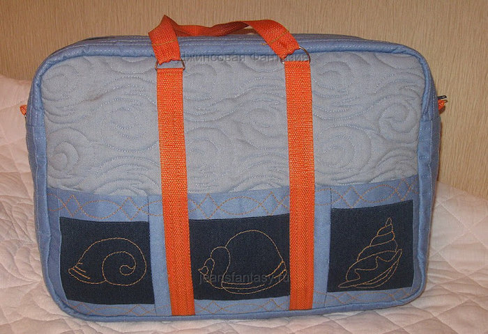 Рукодельница IВеточка пишет о том, как она сшила вот такую нарядную дорожную сумку из джинсов: