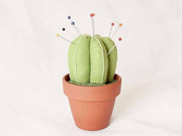 Сделать своими руками симпатичную поделку их фетра, чудную игольницу в виде кактуса, сможет даже начинающая мастерица. Это не только настоящий органайзер для того, чтобы не терять свои иголочки, но и чудесное украшение рабочего стола.