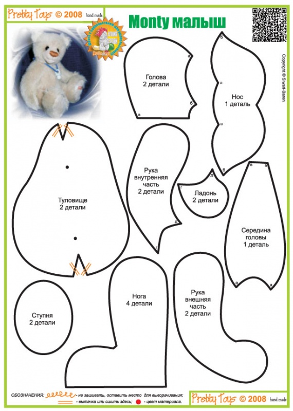 - выкройка мишки (не забудьте перенести на детали выкройки всю разметку)