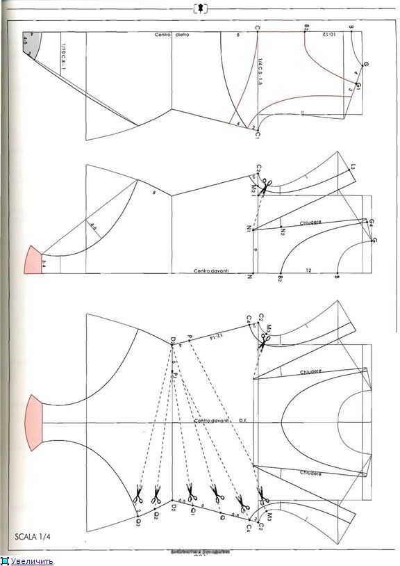Склейте листы бумажной выкройки и вырежьте детали необходимого размера по соответствующим контурным линиям, обращая внимание на разметку и надписи.