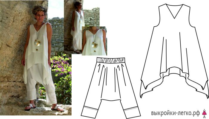 Используя один и тот же верх, поэкспериментируем с низом. Его можно «дорисовать» и выкроить непосредственно на ткани. Получится несколько вариантов, которые несложно «собрать» в единое целое.