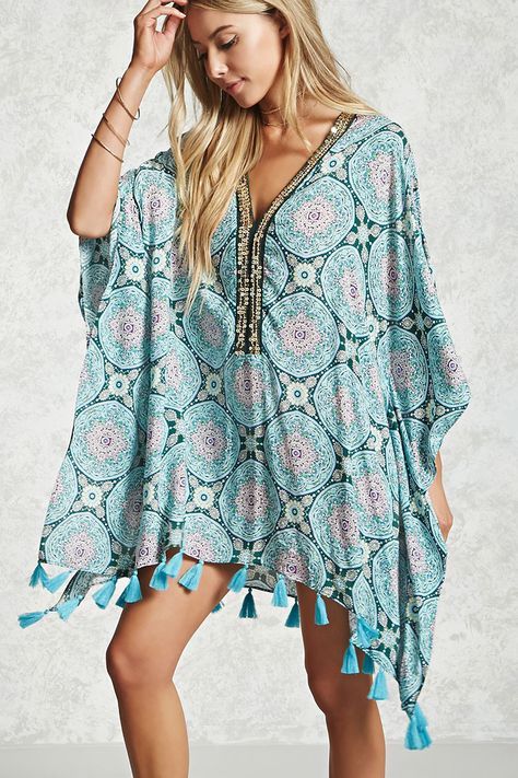 Для пляжной туники лучше выбирать тонкие и легкие ткани – шелк, шифон, хлопок и т.д. Пляжная туника может быть короткой и длинной – выбирайте на свой вкус!