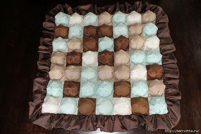 Их пришивают на каждой из сторон через равные промежутки. Сделать на бортиках можно столько завязок, сколько посчитает нужным швея.