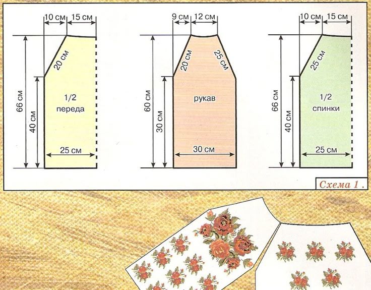 - Сложите ткань вдвое по ширине полочки и спинки с припусками на швы (рис. 2).