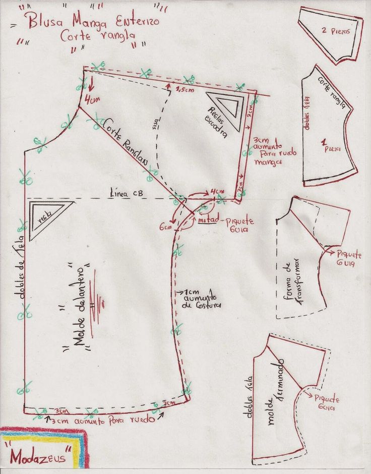 Выкройку женской футболки с рукавом реглан вы можете получить здесь: