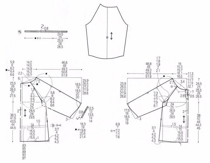 Выкройка рукава слева, которую условно можно назвать «классикой», с вытачкой в области плеча, а выкройка рукава справа – с мягкими складками по линии реглана впереди – подойдёт также для шитья изделий и из более тонкого материала, например, из шифона или батиста.