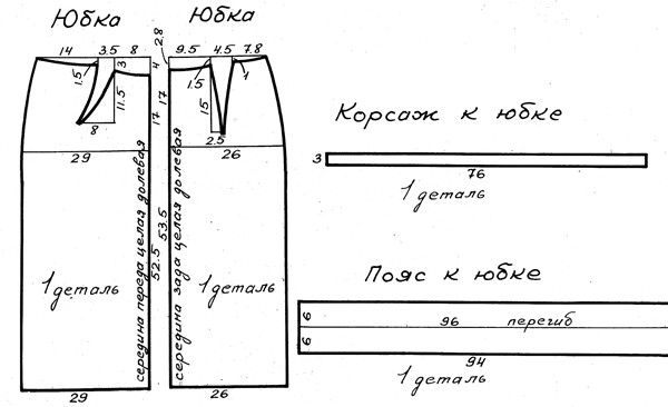 В следующей статьях мы опишем построение выкройки юбки-карандаш с гораздо большим завышением линии талии, а также построим выкройку с фигурной линией верхнего среза.