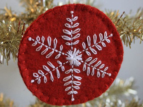 Вышиваем снежинку на фетре нитками – 3 пошаговых МК