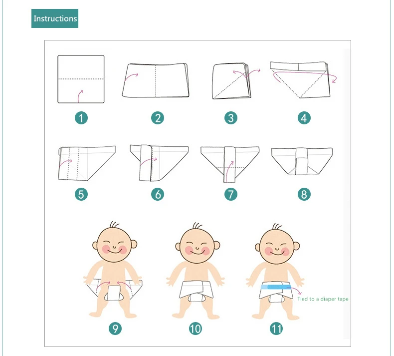 Сделать такой подгузник для новорожденных немного сложнее, чем с помощью двух предыдущих методов, но чтобы не сбиться с правильного пути, подсказкой будут подробные пошаговые фотографии.