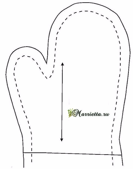 4) Вырежьте рукавицы – две с проводкой посередине и две без.