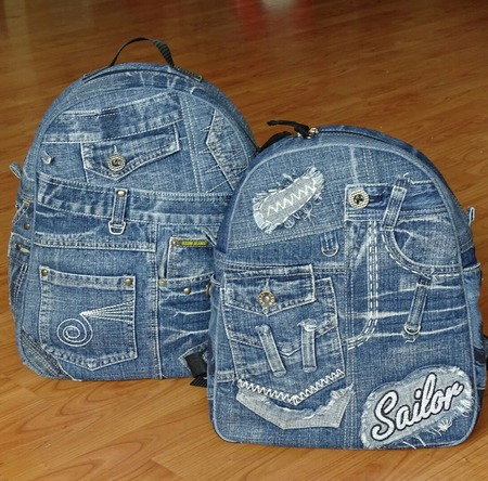 из джинсов шьют школьные рюкзачки- ранцы и часто они оказываются гораздо прочнее и надежнее купленных в магазине.