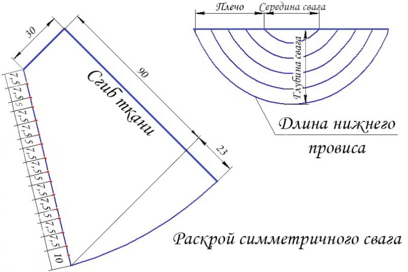 - Выкройка равностороннего(симметричного) свага.Построение.