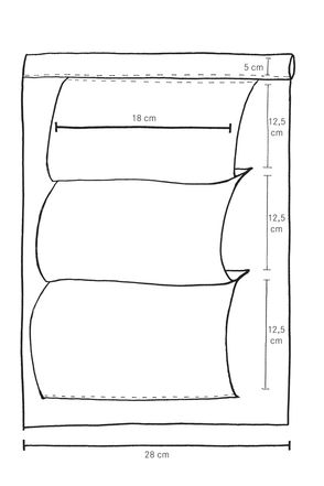 Выкройку можно составить самостоятельно или воспользоваться готовойУглы органайзера должны быть жесткими, даже если конструкция сделана из текстиля