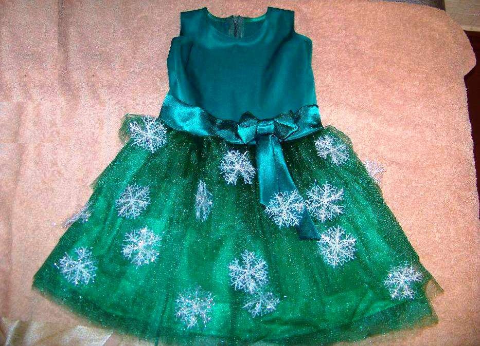 Если карнавальный наряд нужен на утренник, поинтересуйтесь у воспитателей, какая тематика праздника ожидается. Для похода в гости с целью встретить Новый год, можете изготовить нарядное платье, которое перекликалось бы с вашим по цвету или фасону.