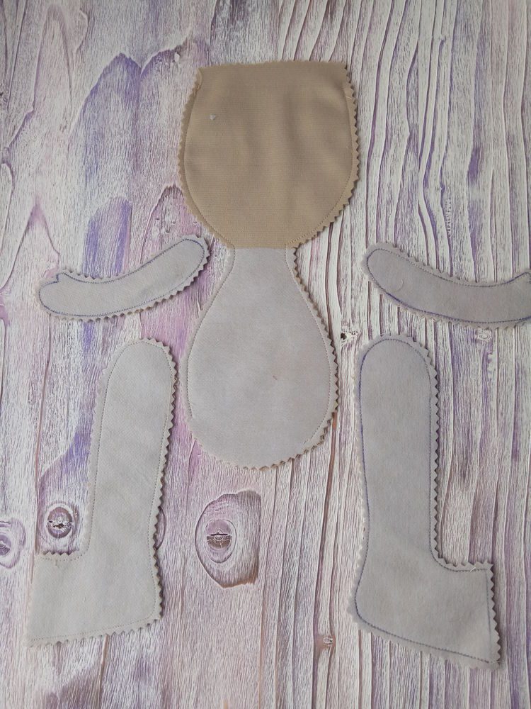 - Прошиваем все элементы куклы на швейной машинке и выкручиваем.