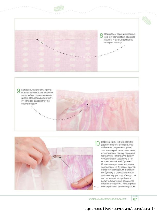 Например, низ юбки, платья или рукава. Длина стежка 1-3 см.