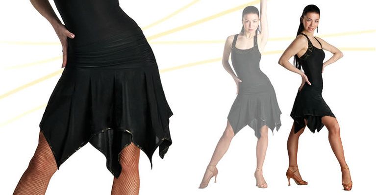 Для юбки-латины характерны разрезы по бокам, отделка воланами и асимметричный низ. Танцевальные движения подчёркиваются лёгкостью и мягкостью ткани, верх облегает фигуру.