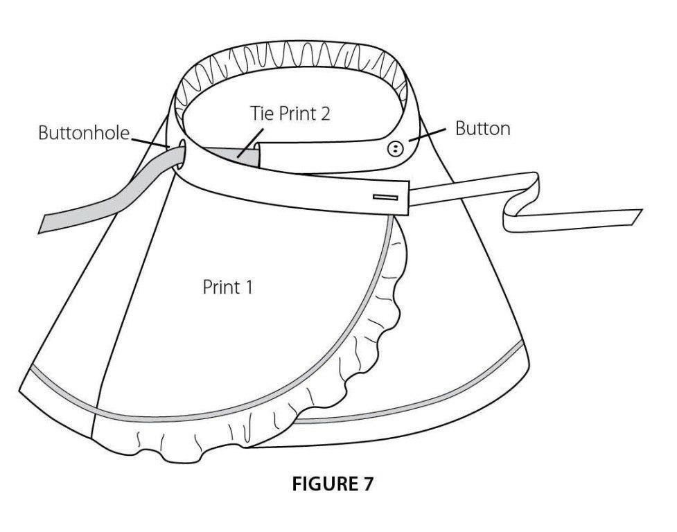 Приколите булавками вдоль талии и продолжайте прикалывать булавками до конца завязок.